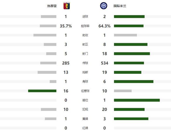 上赛季的欧冠亚军国际米兰,在周中欧冠第一阶段第六轮的强强对话中,主场0-1小负利物浦,止住了连胜的势头,休整四天之后,国际米兰迎来了意甲第十五轮的考验,奔赴客场挑战热那亚,本场比赛国际米兰靠着比塞克的闪击和劳塔罗马丁内斯的传射建功,2-1全取三分,终结了客场不胜热那亚的魔咒。尽管热那亚整体实力和近几个赛季的战绩都不如国际米兰,但他们在自己的主场丝毫不惧蓝黑军团,此前三个赛季都在费拉里斯球场逼平了国米,如今再战蓝黑军团,热那亚在体能和精力上也有优势,毕竟他们没有欧战的牵绊,能否再次从国米的身上获得积分,也就成为了此战最大的看点。为了能够攻克梦魇之地,国际米兰此战尽遣主力出战,在352的阵型中,让索默镇守龙门,比塞克、阿坎吉和巴斯托尼构筑防线,恩里克、巴雷拉、泽林斯基、苏契奇和奥古斯托在中场一字排开,双箭头则是劳塔罗马丁内斯和埃斯波西托。比赛开打之后,主场坐镇的热那亚,在第5分钟就打穿了国米的后防,洛伦佐-科隆博左路杀入蓝黑军团腹地后横敲门前,可惜中路包抄的队友慢了一步,没有能够碰到皮球,错失了取得梦幻开局的绝佳机会。逃过一劫的国际米兰,在1分钟之后取得进球,劳塔罗底线救球后分给了比塞克,后者大禁区右侧突然起脚,打了热那亚门将一个措手不及,皮球擦着立柱入网,帮助球队取得了1-0的领先。第21分钟国米前场打出默契配合,但劳塔罗的打门角度太正,被热那亚门将轻松没收,不过第38分钟,劳塔罗马丁内斯还是撕开了热那亚的球门,在禁区内扛开防守球员之后,左脚抽射建功,帮助国际米兰将领先的优势扩大到了2球,完成传射建功的蛮牛,本赛季在联赛已经贡献了8粒进球和3次助攻,比肩姆巴佩、哈兰德和哈里凯恩三大神锋,成为了近七个赛季唯四参与进球上双的球员。想要延续主场面对国米不败金身的热那亚,随后发起了疯狂的反扑,第68分钟后场长传,策动了一次极具威胁的反击机会,维蒂尼亚过掉索默后,轻松打空门得手,将比分追至1-2,看到了追平的曙光,伤停补时第91分钟,埃库班接到队友左路传中后,前点甩头攻门,但被索默飞身化解,靠着门将的出色发挥,国际米兰扛住了热那亚最后时刻的殊死一搏,将1球领先的优势保持到了最后,如愿拿到了三分。【本场数据】在本轮已经结束的两场比赛中,排名积分榜前二的球队都没有获得胜利,AC米兰被升班马萨索洛逼平,那不勒斯则爆冷输给了乌迪内斯,此战拿到三分的国际米兰,也反超同城死敌红黑军团1分,坐上了意甲第一的宝座。