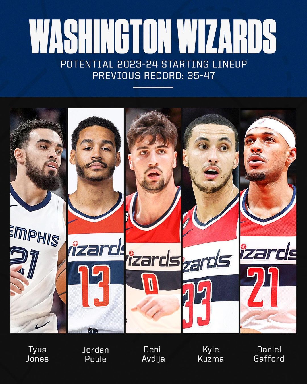 新赛季能赢多少场球奇才潜在的首发阵容:普尔、库兹马领衔